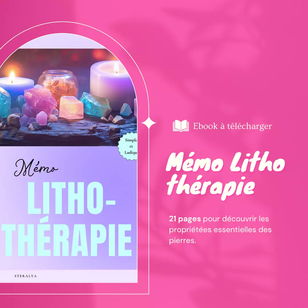 Tu es attirée par les pierres mais tu ne sais jamais laquelle choisir ? Tu as des cristaux chez toi sans vraiment savoir comment les utiliser au quotidien ? Cet ebook mémo lithothérapie de 21 pages est ton allié indispensable.